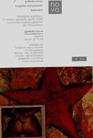 Po raz pierwszy w Polsce Bogdan Korczowski prezentuje tworzona od 1995 r. instalacje malarska "Fototeka". 40 prac z tej serii to male abstrakcyjne obrazki, w które zostaly wkomponowane zdjecia polaroidowe przedstawiajace kobiece ciala w erotycznych pozach. Calosc uklada sie w scienny fresk. Wprowadzajac w "Fototece" opozycje pomiedzy abstrakcja i figuracja, artysta ponawia próby zmierzajace do usytuowania sie w polowie drogi miedzy ekspresjonizmem i introspekcja.