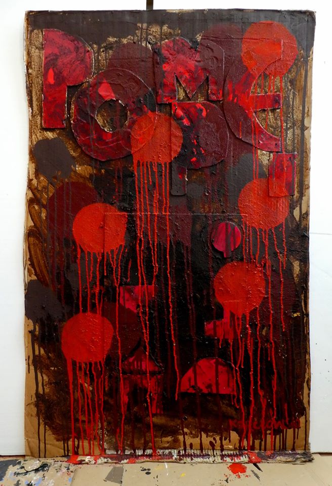 PANDEMIA 95x130cm Hommage à l'Italie à l'époque du coronavirus Techniques mixtes sur cartons d'emballage |